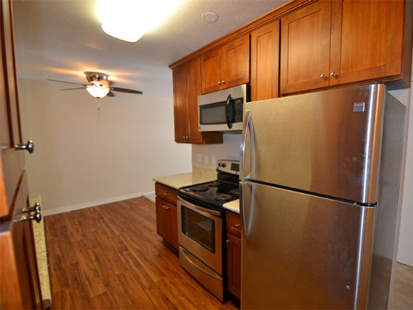 - Fully-equipped kitchen with stove, refrigerator, dishwasher & disposal